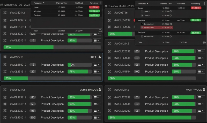 With a glimpse of an eye, you can track the completion of your production orders and your available resources.