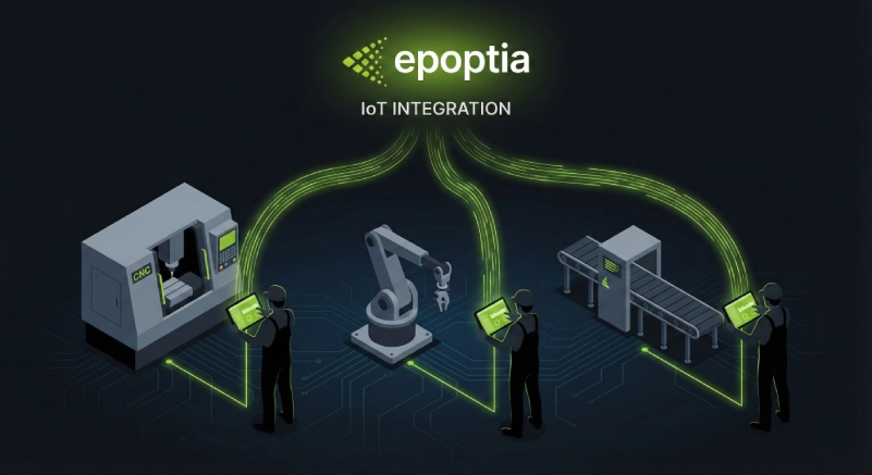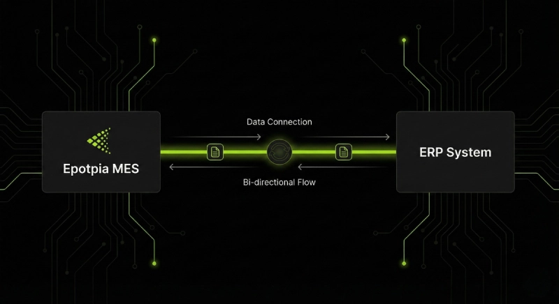 As far as ERP is concerned. There is two-way communication capability. Send every necessary information concerning your production orders, let Epoptia collect production information such as actual consumptions, users, implementation times, and send them back to your ERP or WMS using Webhook technology.