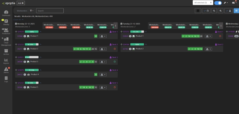 Epoptia utilizes your resources for the minimum availability loss depending on a target day, material throughput, and the availability of the previous production stages. It is a proven tool that reduces dramatically lead times, utilizes resources to a higher level, and improves deliverability.