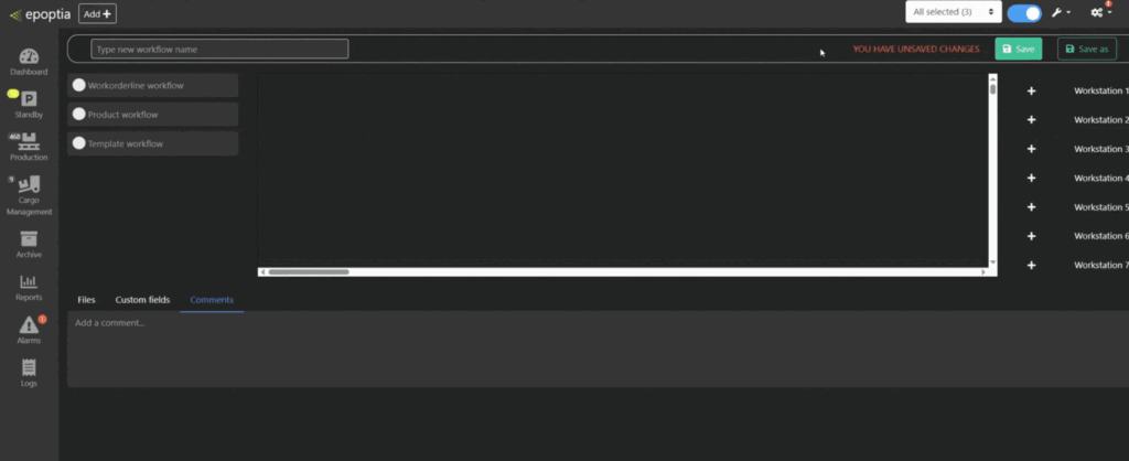 Set up the production cycle of your products by choosing from which workstations your products will pass through, with simple drag & drops.